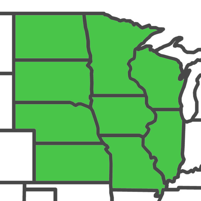 Shipping to Wisconsin,Illinois, Iowa, Minnesota, North Dakota, South Dakota, Nebraska, Missouri, and Kansas