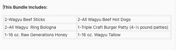 | 2-All Wagyu Ring Bologna | 1-Triple Craft Burger Patty (4-½ pound patties) |